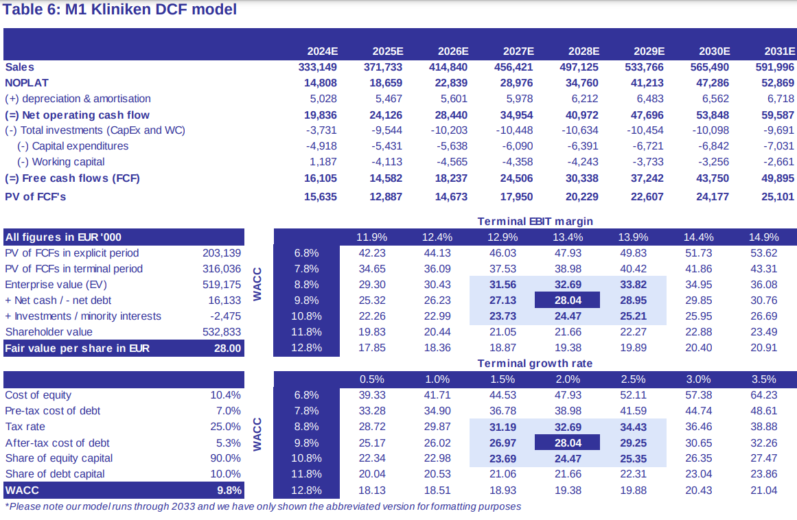 aus: "Table 6: M1 Kliniken DCF model", https://www.more-ir.de/d/31007.pdf