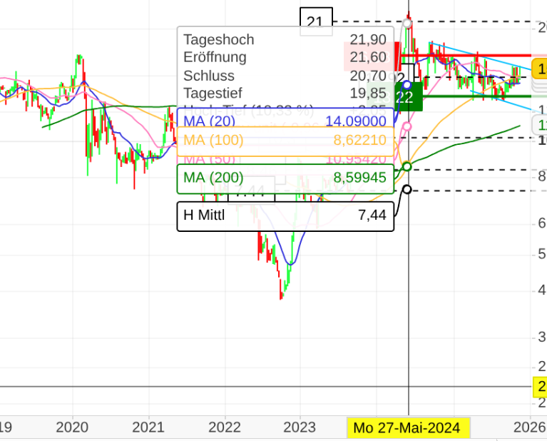 Siehe angehängte Grafik: Es fehlen noch (€21,90 ./. €15,71 =) 6,19 Punkte bis zu €21,90.