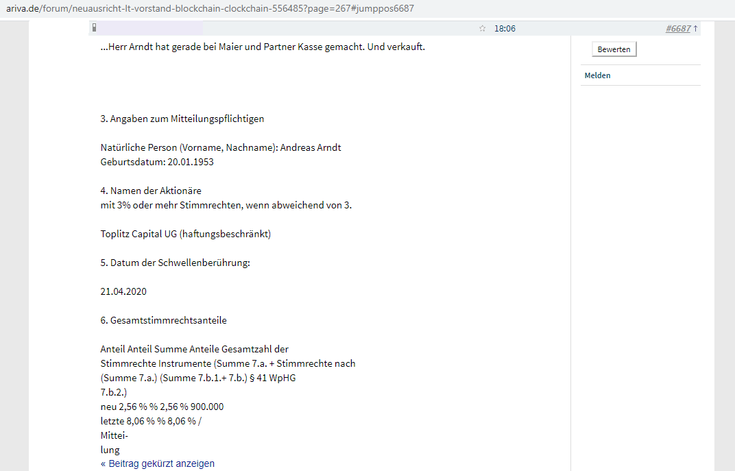 Nur gestern und heute wurde über 13 % der Aktien gehanmdelt. Immerhin.