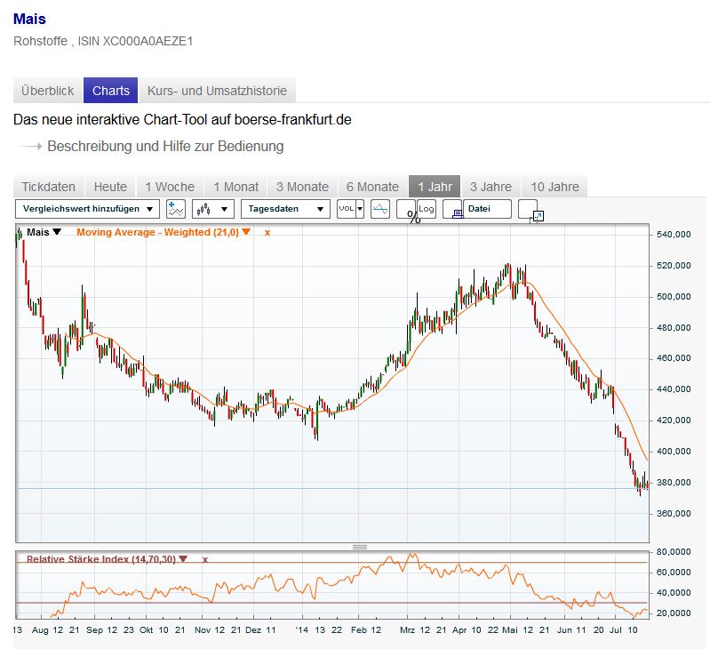 (shareribs.com) Peking 13.08.14 - Zentralchina wird derzeit von der schlimmsten Dürre seit gut 50 Jahren heimgesucht. Dies betrifft auch die Kornkammer des Landes, die nördliche Mandschurei. Analysten gehen davon aus, dass sich in diesem Jahr ein Maisdefizit von 40 Mio. Tonnen ergebnen könnte.
