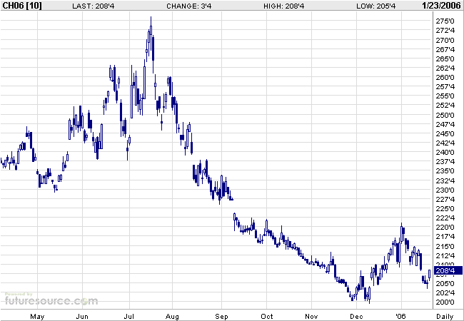 China's corn consumption is expected to total 125 million tonnes this year, compared with the 2005 crop of 134 million.