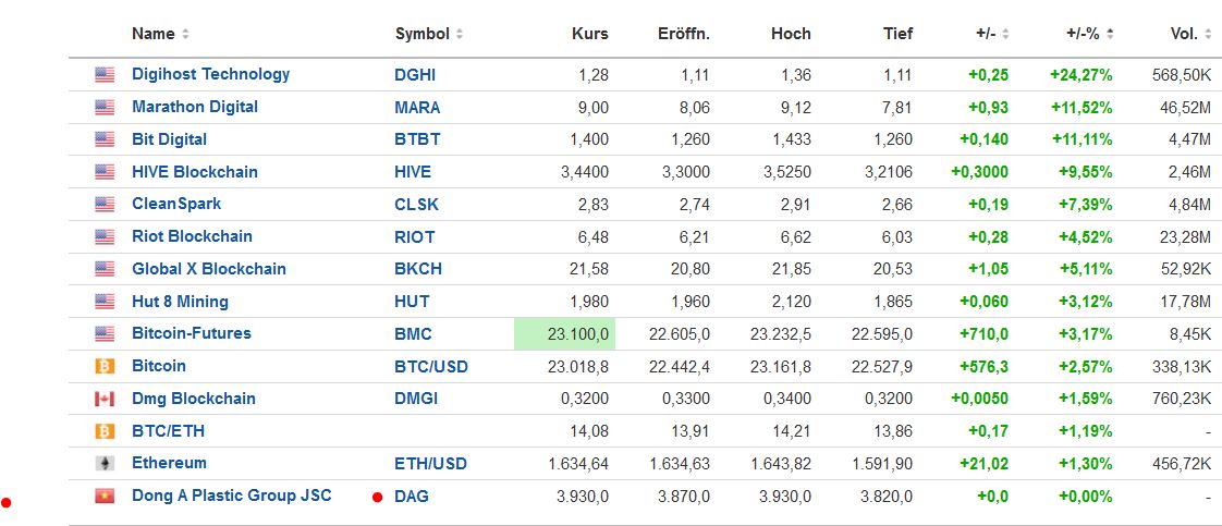 Digihost ist heute die Nummer 1, ich habe die Aktie jetzt auch im Depot. Sonst zeigen die Miner keine relative Stärke zu Bitcoin.