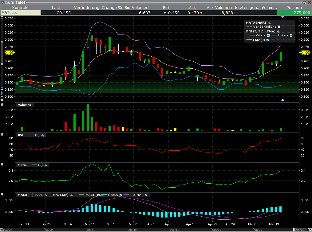 6. Aufgrund meiner Einschätzung und Überzeugung habe ich meine Position bei MATSA heute Nacht weiter ausgebaut und meinen DK etwas "verteuert". Hier spekuliere ich auf mehr als 100% in den nächsten sechs Monaten. 2013 wird das MATSA Jahr.