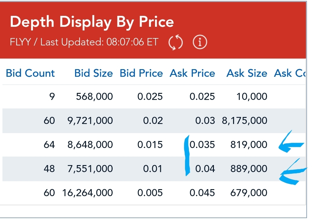 Zum gestrigen Handelsschluss waren nicht mehr viele Aktien auf der Ask-Seite bei 0,03 CAD in Kanada.