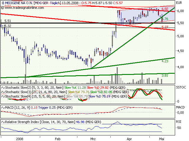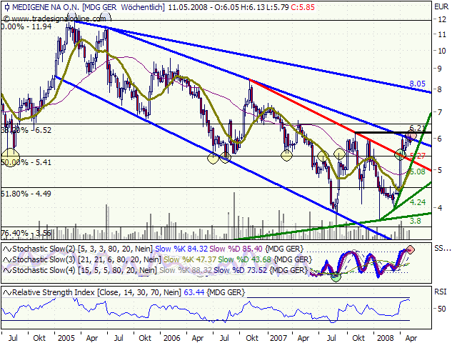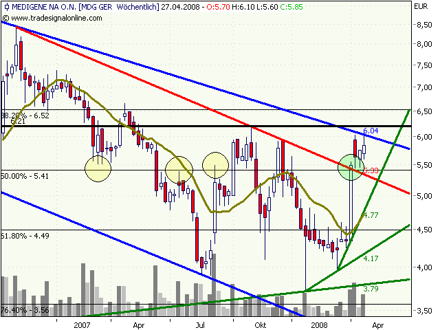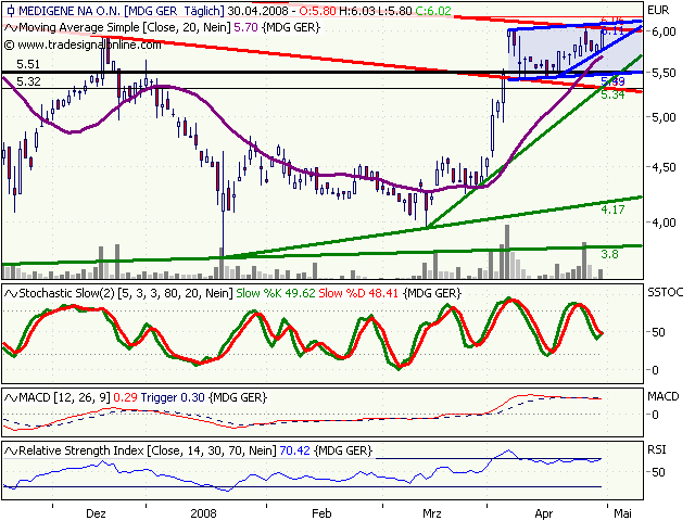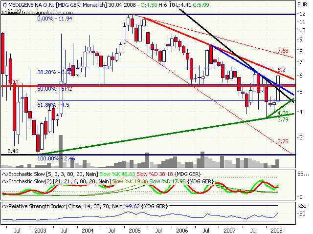 Medigene steckt mitten in den Verhandlungen zu attraktiven Partnerschaften, da brauchen sie doch nicht für 6Euro ne Kapitalerhöhung durchführen. Kommt die Meldung zum Abschluss einer Partnerschaft geht der Kurs schon von alleine hoch. Außerdem hat Medigene noch Cash genug für dieses Jahr und bei guten Kosten und Umsatzverlauf bis zum Ende des nächsten Jahres.