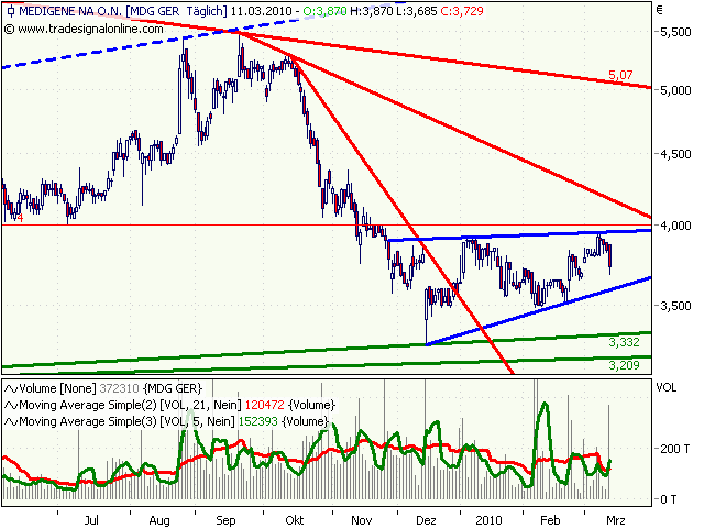 Lasst die Finger von dieser Aktie. Habe im Dez. 2008 10 Aktien gekauft und Medigene war eine von drei Verlustgeschäften.
