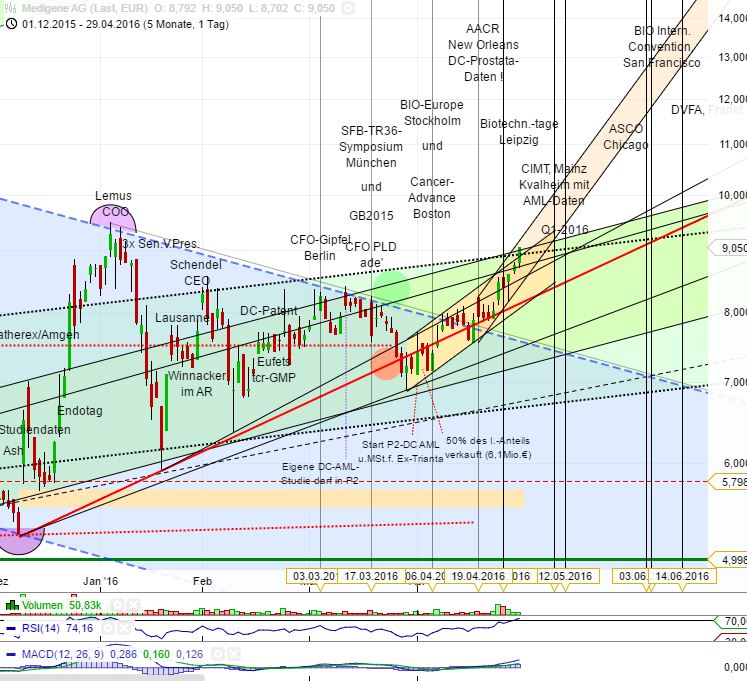 Das der Kurs an einem Freitag so fest über 9 Euro schliesst, ist für mich ein starkes Zeichen; Trader schliessen vor einem Wochenende gerne ihre Positionen und sichern den Gewinn. Die Kursentwicklung bei Medigene ist schwer einzuschätzen ...