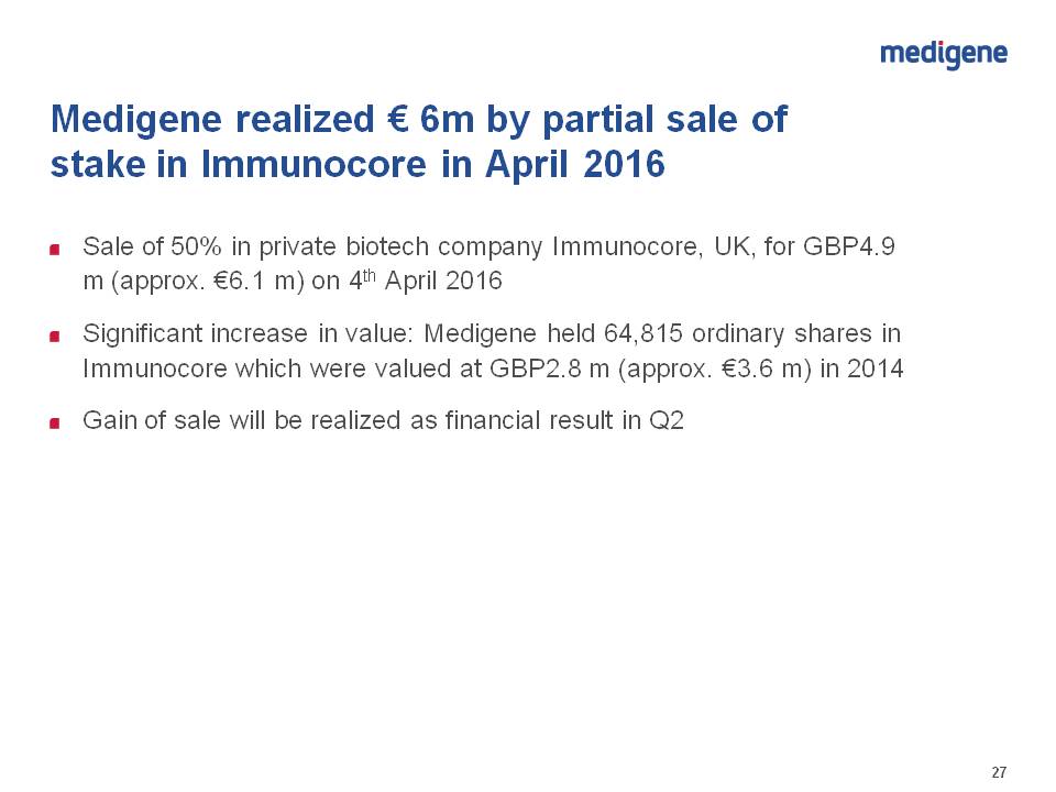 weil sie das Geld für ihre eigene Plattform braucht - aber ein klein wenig will sie doch lieber noch bei Immunocore halten - Uups.