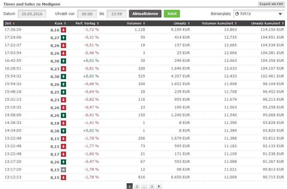 dann stehst du plötzlich an der Seitenlinie und schaust dem Kurs hinterher ... für Medigene spricht die komfortable finanzielle Situation ... und Medigene war letztlich gut zu mir, d. h. Medigene hat mir sehr viele Gewinne beschert ...