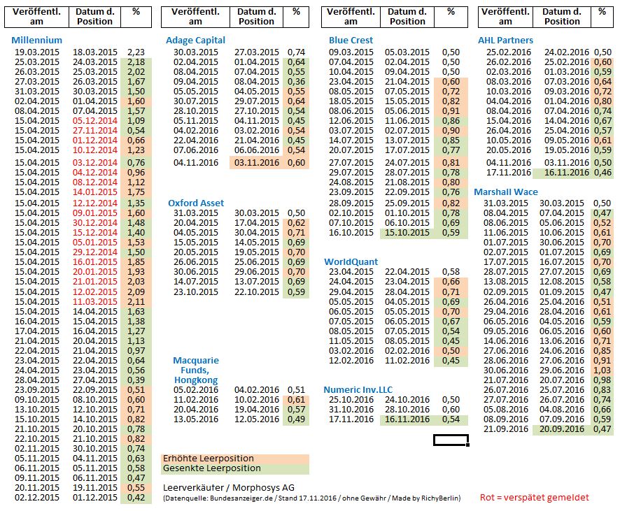"..In den TecDax wird derweil die Medigene-Aktie aufgenommen, welche die Titel der AIXTRON verdrängt. Den Schritt begründete die Deutsche Börse mit der Fast-Exit-Regel, da Aixtron hinsichtlich der Marktkapitalisierung die Kriterien für einen Verbleib im TecDAX nicht mehr erfülle. Die Änderungen werden zum 19. Dezember 2016 wirksam. Da an der Börse mit diesen Entscheidungen gerechnet wurde, dürften die Kurse der betroffenen Unternehmen auf das Index-Reshuffle kaum reagieren..."