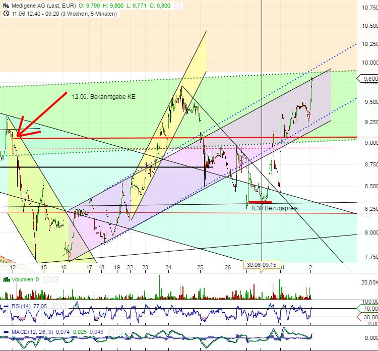 Fundamental mag man äußerst skeptisch gegenüber der Aktie des Biotech-Unternehmens Medigene AG eingestellt sein – doch für kurzfristig agierende spekulativ eingestellte Trader könnte sich abermals ein Blick auf den Kursverlauf der Aktie lohnen. Denn der Wert pendelt seit Anfang Juni innerhalb einer Range hin und her – mit leicht ansteigenden Tiefs.