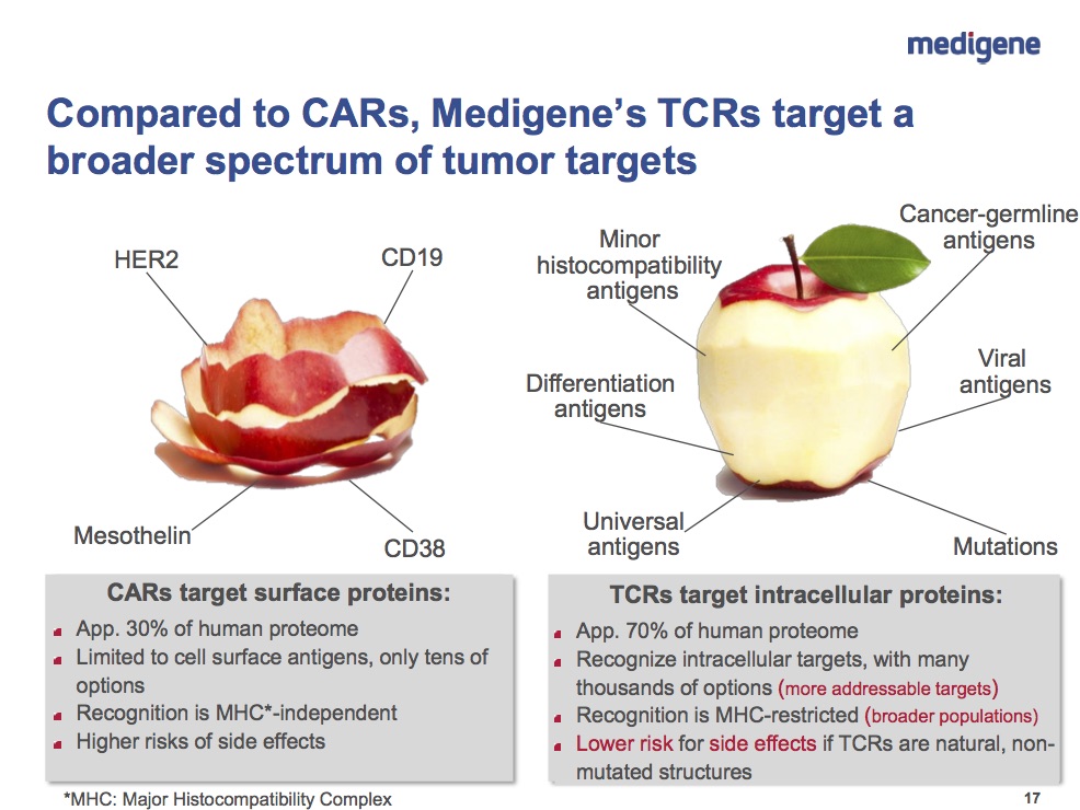 Gleichzeitig argumentiert Medigene mit dem Vorteil der natürlichen Aktivierung der T-Zellen gegenüber der künstlichen bei CAR-T eingesetzten Verfahren, die zum Teil im Verdacht stehen für deren Giftigkeit mitverantwortlich zu sein.