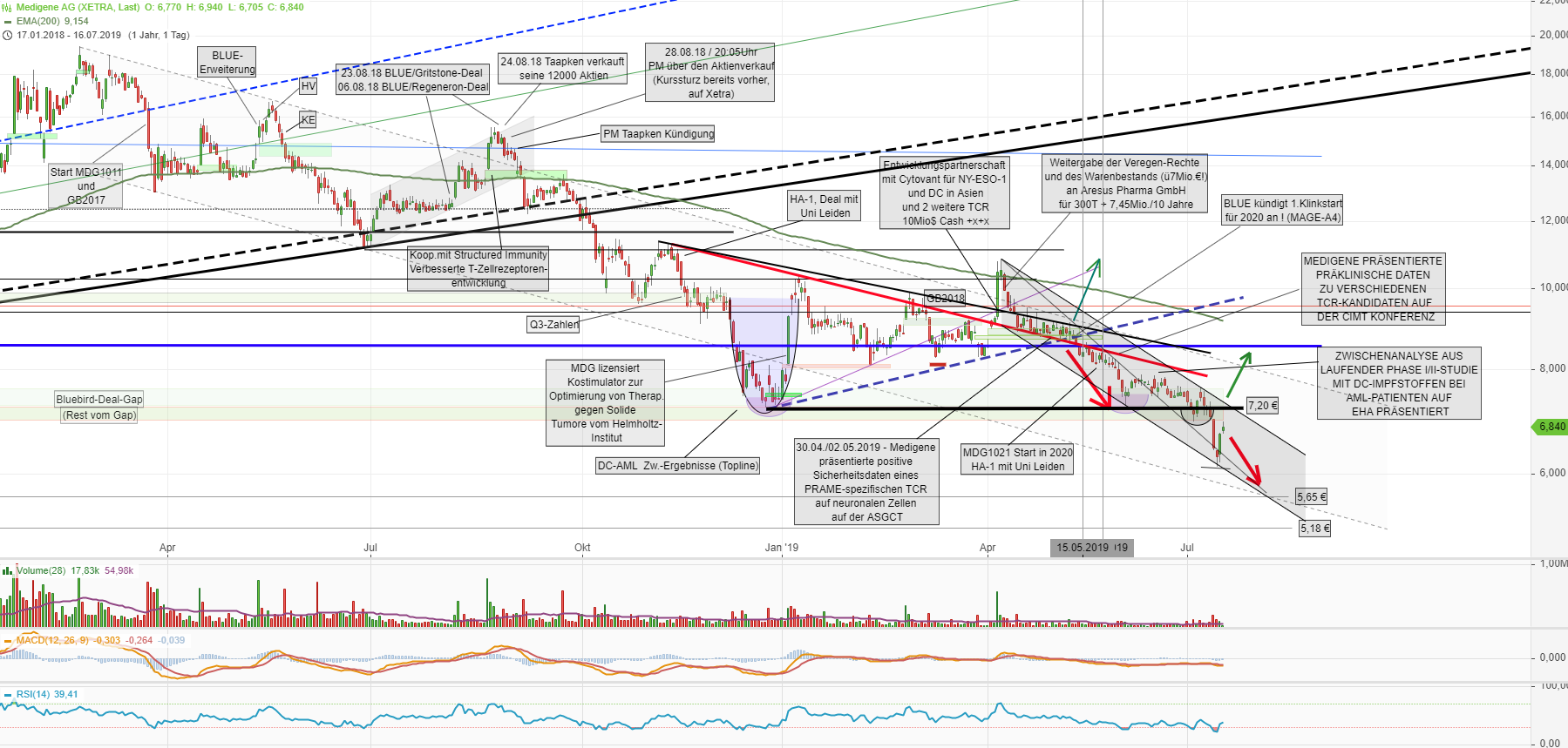 Wenn man die Kursentwicklung betrachtet, ist das echt hart. Medigene stand vor dem Cytovant Deal bei irgendwas um 9,30 Euro. Dann verkündet das Unternehmen einen "Auftragseingang" mit einem Volumen von bis zu einer Milliarde, die Starts von 2 wesentlichen TCR-Projekten im nächsten Jahr, die signifikante Ausweitung der Behandlungszentren; und die Reaktion des Marktes ist ein Abverkauf bis fast 6 Euro (rd. 150 Mio. Euro Marktkapitalisierung). Das ganze bei einem Cashbestand von (zuletzt verkündeten) 65 Mio. Euro. Damit waren zu diesem Zeitpunkt das Know how, die Produkt-Pipeline, die so hochgelobte Roboterplattform, etc. mit EUR 85 Mio. bewertet. Hm?