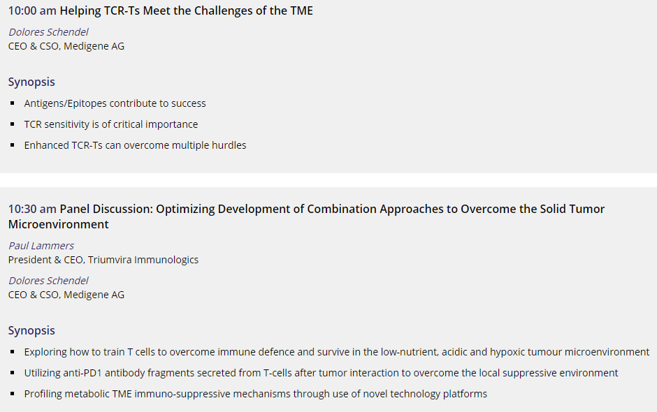 Medigene hat Prozesse etabliert, mit der die TCR-Technologie recht schnell und effektiv weiterentwickelt werden kann und mit der Ideen zur Optimierung der Zelltherapie umgesetzt werden können. Das gezeigte Verfahren zum Auffinden und Testen potentieller TCRs für CD8 als auch CD4 T-Zellen lässt sich z.B. auch für die neuen IRICoR Targets verwenden. Kombiniert mit dem PD1-4-1bb Switch-Rezeptor hat Medigene zusammen mit Partnern nun die Möglichkeit, eine ganze Reihe von T-Zellen gegen neue Zielantigene in die klinische Entwicklung zu bringen.