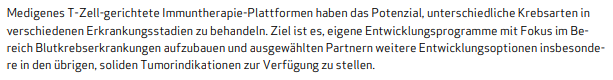 Ich weiß nicht, was hinter den Kulissen von Medigene passiert. Ich kann mir aber nicht vorstellen, dass ein ständiges Präsentieren auf Konferenzen und dann Warten zu erfolgen führt. Wenn man was erreichen möchte muss man selbst aktiv werden und den Großen solange auf die Nerven gehen, bis der Deal steht. Und in der Position, in der sich Medigene befindet gerne auch der second best Deal.