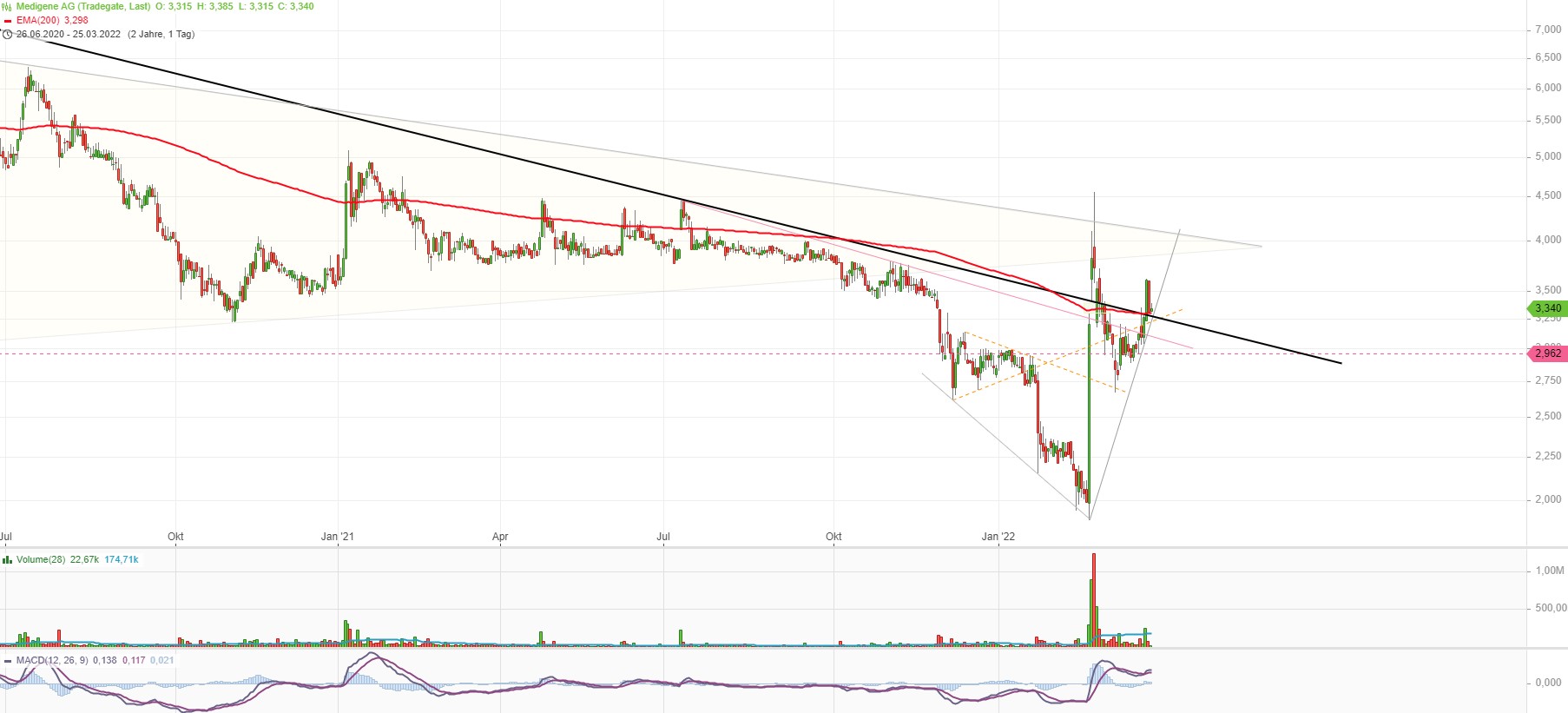 Ich möchte wieder erwähnen, dass ich selbst an Medigene beteiligt bin und auf steigende Kurse hoffe.