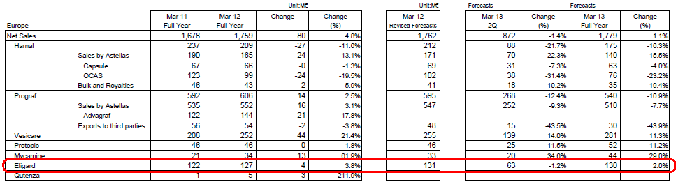 Medigene profitiert weiterhin durch die zweiprozentige Umsatzbeteiligung an den durch Astellas mit Eligard® erzielten Marktumsätzen.