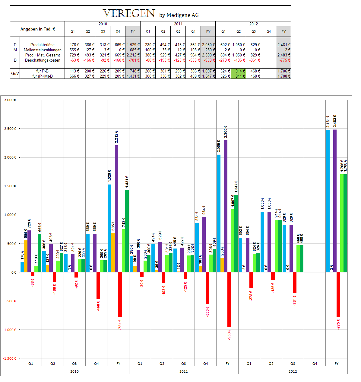 -7.387 TEUR (9M-2011: -5.704 TEUR) bzw. auf Quartalsbasis auf -2.421 TEUR (Q3-2011: 100 TEUR). Der Periodengewinn aus nicht fortgeführten Aktivitäten sank auf 5.007 TEUR (9M-2011: 20.127 TEUR) bzw. im dritten Quartal 2012 auf 5 TEUR (Q3-2011: -44 TEUR). Zum Periodenergebnis trugen vor allem die erhaltenen Meilensteinzahlungen für den Verkauf der Eligard®-Rechte bei. In der Vorjahresperiode wurde das Ergebnis zudem durch den Verkauf von Immunocore-Anteilen positiv beeinflusst.