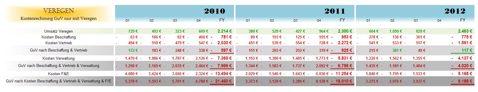 In den ersten neun Monaten 2012 wurde ein Periodenergebnis von -2.380 TEUR (9M-2011: 14.423 TEUR) bzw. im dritten Quartal 2012 von -2.416 TEUR (Q3-2011: 56 TEUR) erzielt. Der Periodenverlust aus fortgeführten Aktivitäten stieg im Vergleich zur Vorjahresperiode auf