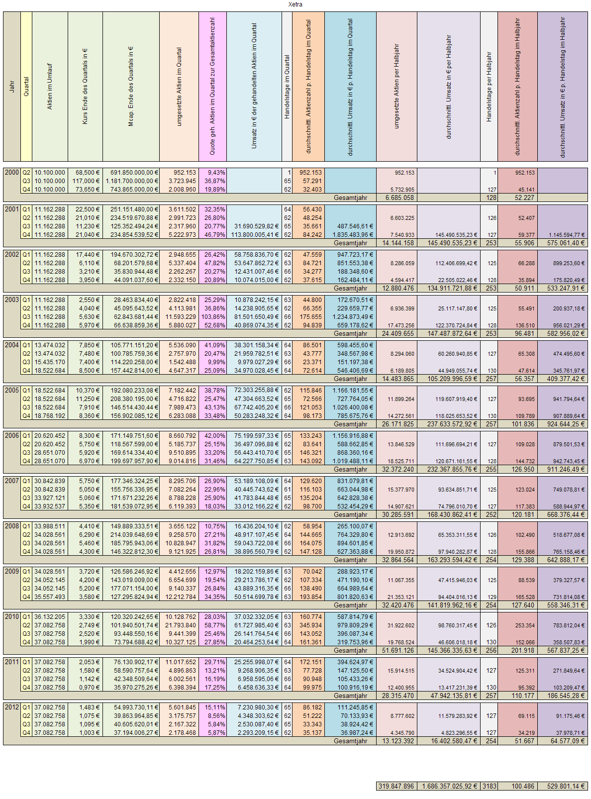 Aber, kurzum - hier die Alltimestatistik Xetra - MDG