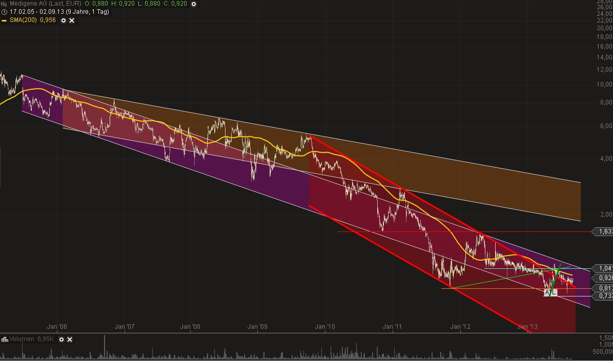 Speziell SynCore/Sinphar (und eventuell auch Sigma-Tau) dürften bestens über die Fortschritte bei Medigene informiert sein und mit ihrem 'Cash in der Täsch' den günstigsten Zeitpunkt nutzen wollen - wobei alles (nicht nur unter 1 beziehungsweise heute 24:00 Uhr 4 Euro) unter dem eigenen Einstandskurs, aus Sicht der Kleinaktionäre natürlich absolut inakzeptabel ist - nur dass wir es jetzt nach dem Reverse-Split nicht mehr aufhalten können. Und der SynCore Einstieg dummerweise die Messlatte sein könnte, über die keiner ohne Not springen will.