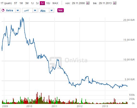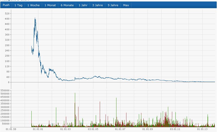 Aber eigentlich ganz interessant...wir sind damals ja mit 10Mio.Aktien gestartet...im Laufe der Jahre ja immer weiter verwässert und verwässert, bis auf bald 40Mio.Aktien... und nun stehen wir nach Spilt wieder bei 10 Mio.Aktien... Das wäre dann ein Kursverlust von 42,- (oder etwas mehr) auf jetzt 3,65€ ... Das wäre ja noch ein einigermaßen rechenbarer Verlust, ist aber in Wahrheit viel schlimmer, weil sich ja auch bei ihm die Aktienanzahl geviertelt hat.... Eigentlich bereits ein Totalverlust.