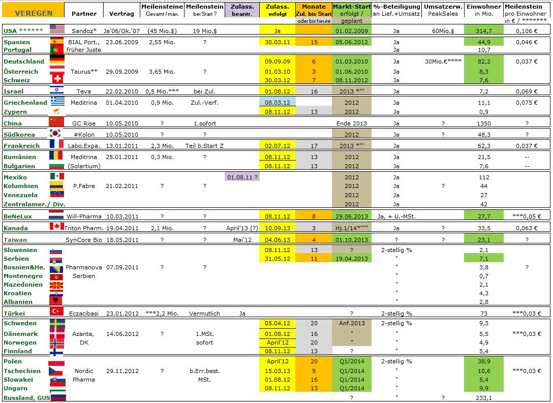 Bereits vermarktet wird Veregen® in den USA, in Deutschland, Österreich und der Schweiz, in Spanien, Serbien, den Niederlanden und in Taiwan. Zudem ist die Salbe in weiteren Ländern zugelassen. Es bestehen mehrere Vertriebspartnerschaften in Europa, Asien und Amerika. Medigene beabsichtigt in weiteren Ländern Vertriebspartnerschaften abzuschließen, um das Marktpotenzial von Veregen® weiter auszuschöpfen.