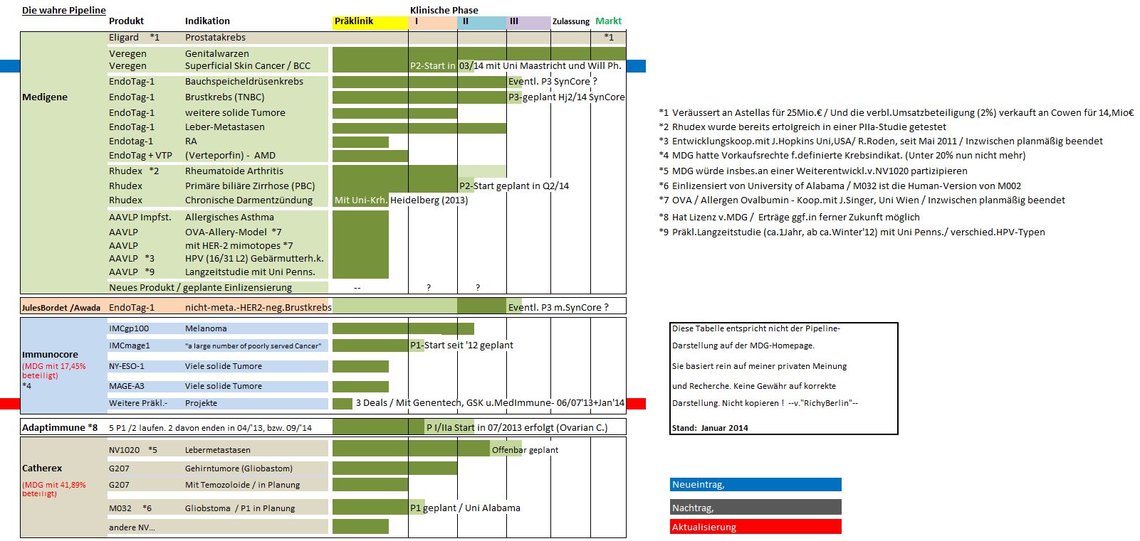 Daneben ist aber auch bei Medigene jederzeit mit - zumindest für uns Aussenstehende unvorherzusehenden -erfreulichen wie unerfreulichen Ereignissen zu rechnen!