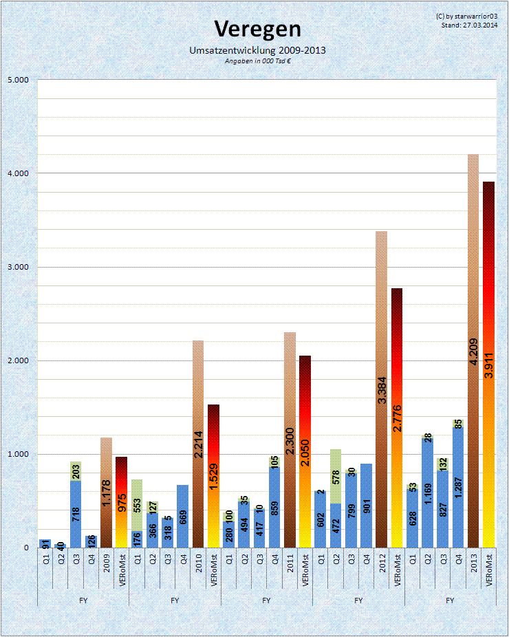 Die Zahlen waren ordentlich aber nicht berauschend. Aber was heißt das schon. Ordentlich ist immer noch sehr gut. Das Umsatzwachstum Veregen war sehr ordentlich. Und mit weiteren Ländern in den nächsten Monaten werden weitere Märkte und damit weitere Umsätze hinzukommen. Die hier generierten Deckungsbeiträge sind langsam spürbar.