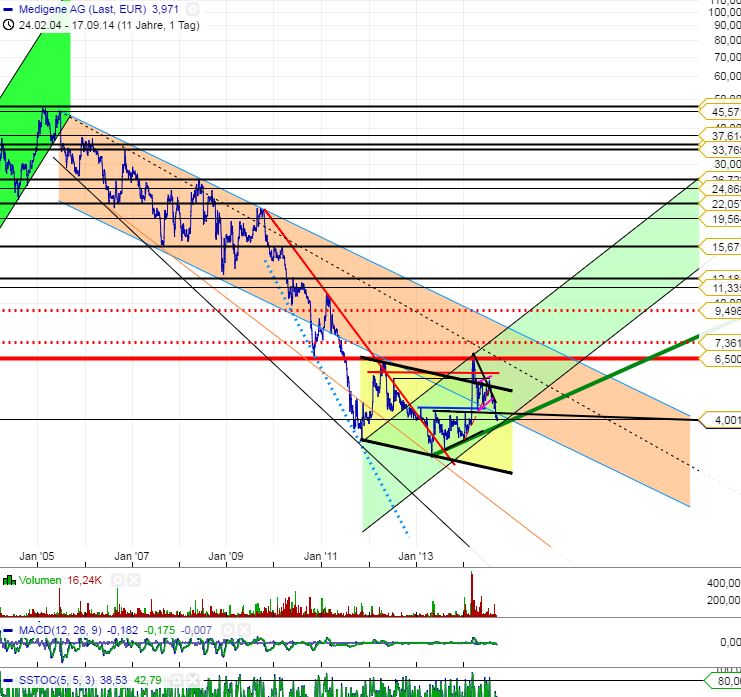 Der Kursverlauf der Medigene-Aktie im Jahr 2014 hat den Börsianern nur im ersten Quartal Laune gemacht. Seitdem die Biotechaktie im März bei knapp 7...