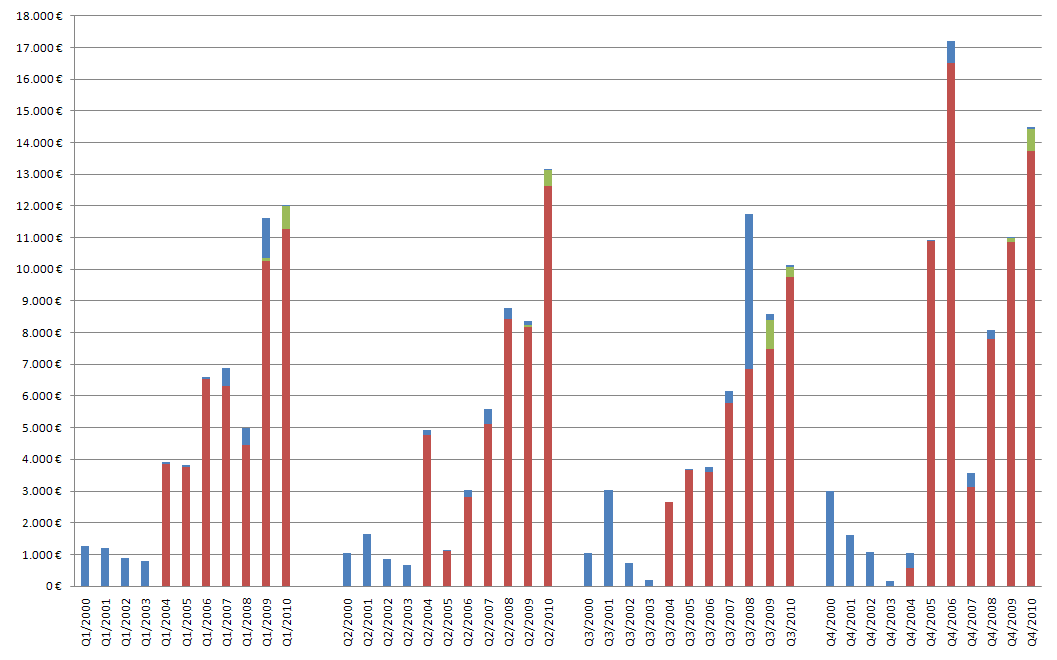 einer Steigerung um 88 % gegenüber dem Vorjahr entspricht (2009: 1,2 Mio. EUR).
