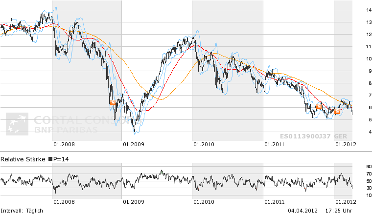 Kann sie einfach nicht richtig einordnen. Doch mittlerweile gebe ich den Worten: The trend is your friend! wesentlich mehr Beachtung und der sieht bei der Santander einfach miserabel aus. Doch wann kommt die Trendwende: Jetzt, bei 5€, bei 4,50€ oder erst bei 4€, dem damaligen Tief nach Lehmann. Ich beobachte sie jetzt auf jeden Fall in den kommenden Tagen, Wochen und Monaten.