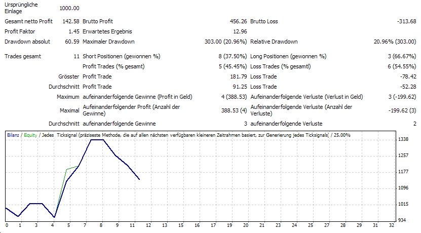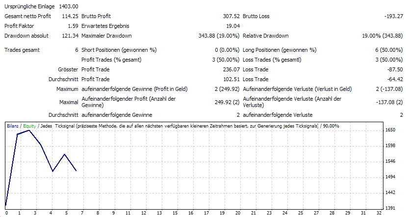 Bei den Versuch auch für EURUSD ein positives Ergebnis zu bekommen, habe ich noch die Möglichkeiten genutzt: