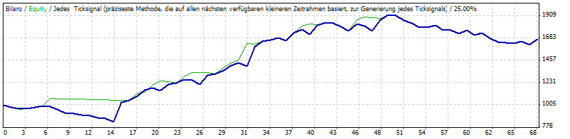 Durch die Parametriesierung ist es gelungen, die initiale Seitwärtsphase und den Draw-Down zum Ende der 2. Optimierung zu beseitigen!