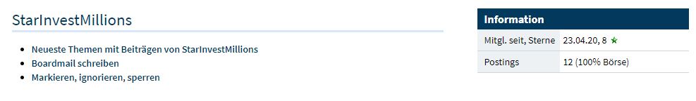 | 22 | 20.197 | Meine Wirecard-Gewinne - Thread! | BorsaMetin | crossoverone | 11.08.25 17:09 | |