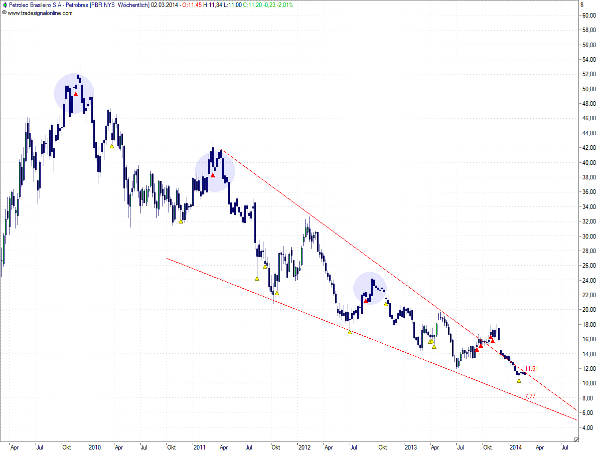 ich habe vor kurzer Zeit auf einem Öffentlich-Rechtlichen Sender eine Dokumentation über den Aufstieg Brasiliens gesehen, darin ging es logischerweise auch um das dortige hohe Rohstoffvorkommen. Insbesondere die Entdeckung einiger riesiger Ölfelder vor der Küste, wurden erwähnt und da diese erst noch erschlossen werden müssen, um durch das Öl die Lizenz zum "Geld drucken" zu erhalten, könnte sich dieser Titel Petroleo Brasileiro Aktie [WKN: 932443 / ISIN: BRPETRACNOR9] doch sicherlich mittel bis langfristig sehr gut entwickeln, oder?