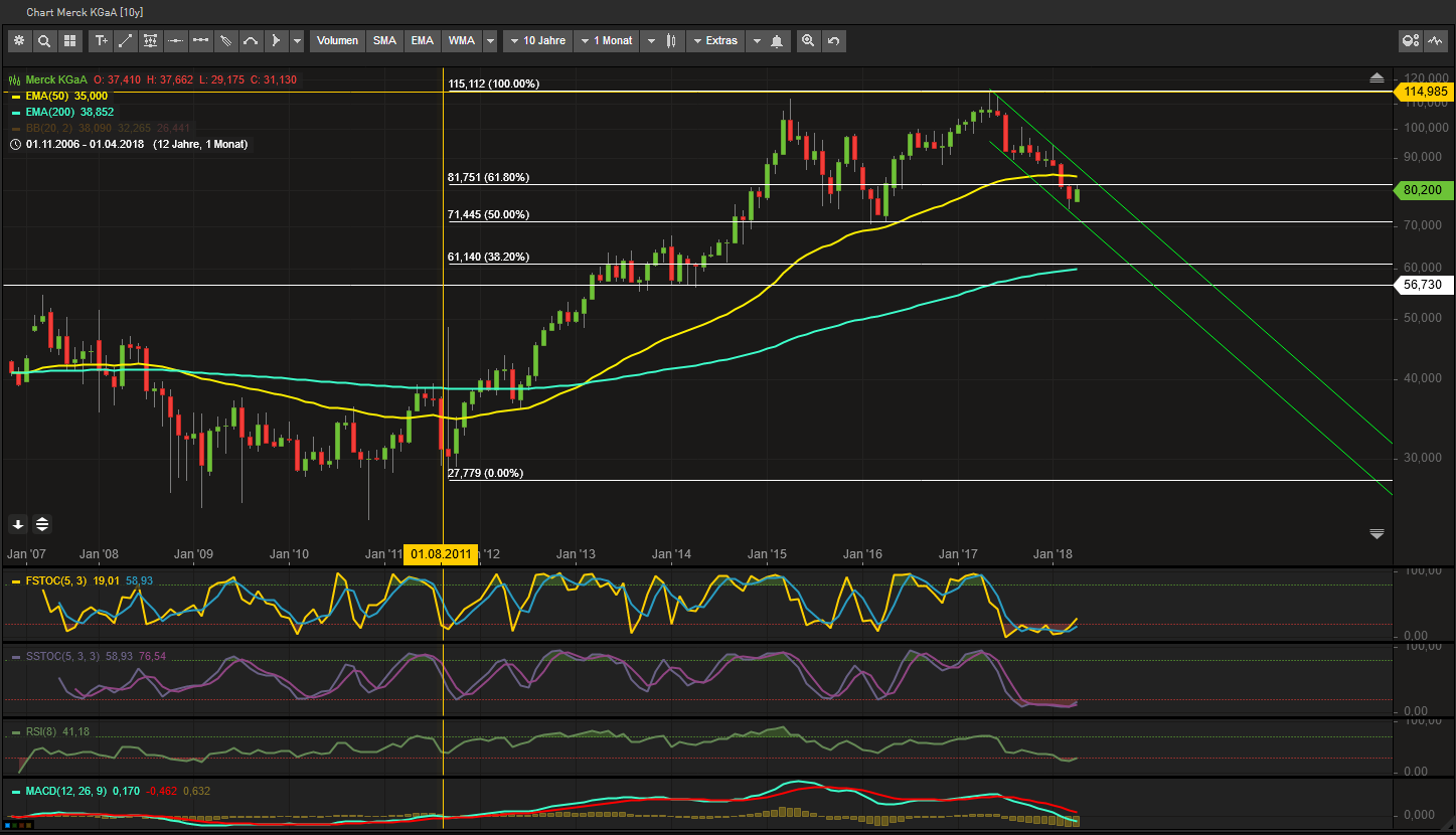 Merck kauft man, weil man das Unternehmen verstanden hat. Wenn es dann noch günstig zu haben ist, dann sollte man die Chance nutzen und nicht wegen ein paar Spekulationseuro den Einstieg verpassen.
