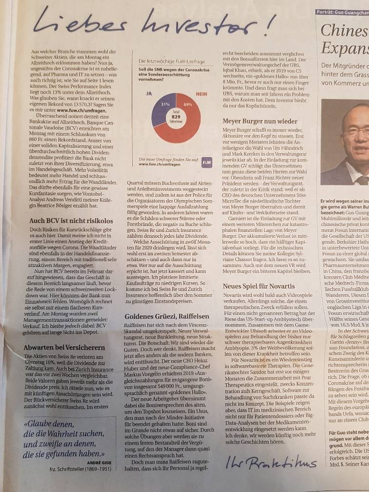 Zunächst einmal bin ich erleichtert, dass offensichtlich die Stimme der Aktionäre im nächsten Verwaltungsrat mit zwei Vertretern ordentlich vertreten ist.