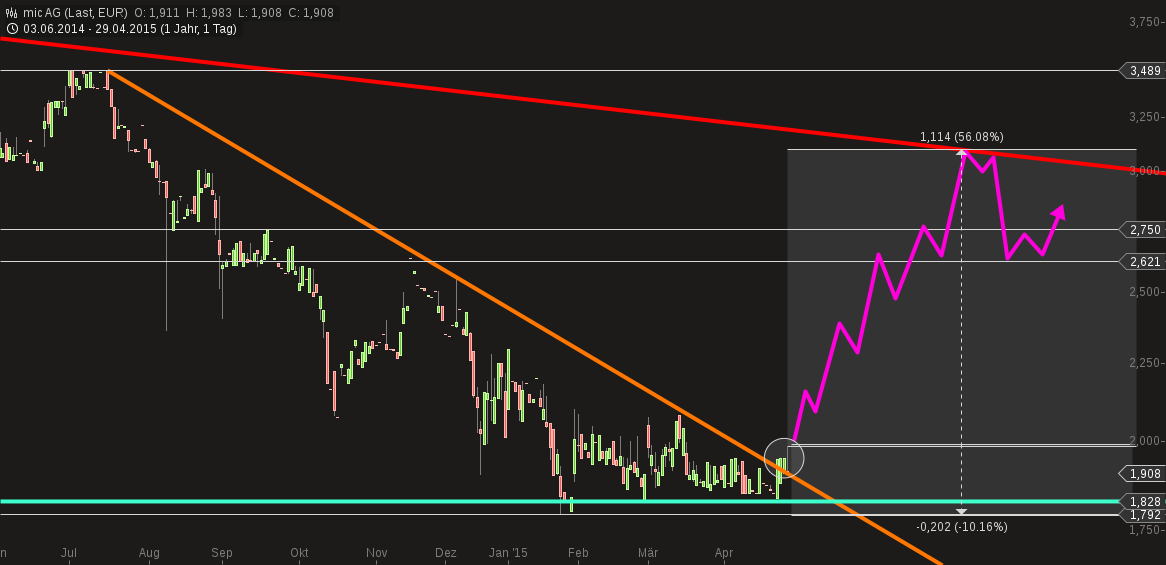 Und finde den Chart aktuell ziemlich interessant. Der mittelfristige, seit Juli laufende Abwärtstrend wurde gebrochen. Damit könnte ein Rebound bis an den langfristigen Abwärtstrend erfolgen. Die Position könnte man absichern, indem man unter dem Januar-Tief die Reißleine zieht.