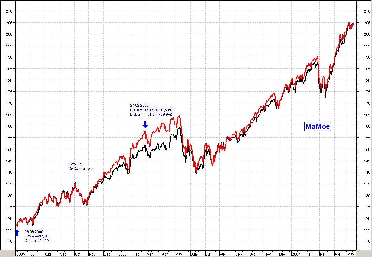 Auf der Skala der bei Anlegern beliebtesten Produkte liegen Alpha-Zertifikate nach wie vor weit oben. Bei diesen Papieren sind positive Erträge unabhängig von der allgemeinen Marktentwicklung möglich. Mit dem CS-Alpha-Express-Step-Zertifikat DivDax versus Dax (ISIN DE000CS0AJH1) bietet Credit Suisse jetzt ein Produkt mit besonders hohen Rückzahlungswerten an. Sollte sich der DivDax-Kursindex, der die 15 dividendenstärksten Dax-Titel enthält, bis zum 18. August 2008 maximal ein Prozent schlechter als der Dax-Performanceindex entwickeln, erfolgt die Rückzahlung zu 120 Euro.