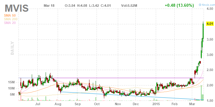 Der reine Umsatzanstieg liest sich natürlich erst einmal sehr gut, aber es muss nun auch ein ordetliches Ergebnis damit erzielt werden. So um die 30- 40% Bruttomarge sollte es schon sein. Bei höheren Umsätze auch mehr. Das zeigt aber wieder deutlich unter welchen Umständen MVIS den Deal mit Celluon eingefädelt hat. 0 Verhandlungsmacht. Und nun muss man die schlechten Konditionen eben ausbaden. Allerdings ist das Orderbuch gut gefüllt mit 15Mio, die auch in 2015 und 2016 abgearbeitet werden sollen. Es kann also mit ca. 2,5Mio. Umsatz pro Quartal gerechnet werden. Quasi als Basisumsatz. Obendrauf kommn noch Entwicklungsumsätze aus den Projekten. Und vielleicht kommt ja auch noch etwas Produktumsatz aus dem Geschäft mit dem Handyhersteller, das ja im 2. Halbjahr 2015 losgehen sollte. Weiterhin steht UPS auf der Kundenliste und Eine Automobil OEM sowie ein Tier1. Es gibt also Möglichkeiten aber es müssen noch deutlich mehr werden und es müssen vor allem Umsätze her damit bald der Break even erreicht werden kann.