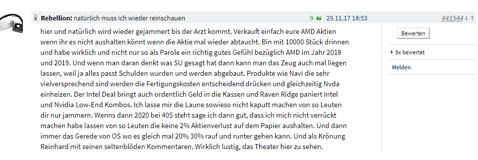 | 32 | 75.291 | AMD- Mit Zen und Vega in eine bessere Zukunft | kewlworld | Gilbertus | 01.04.22 11:22 | |