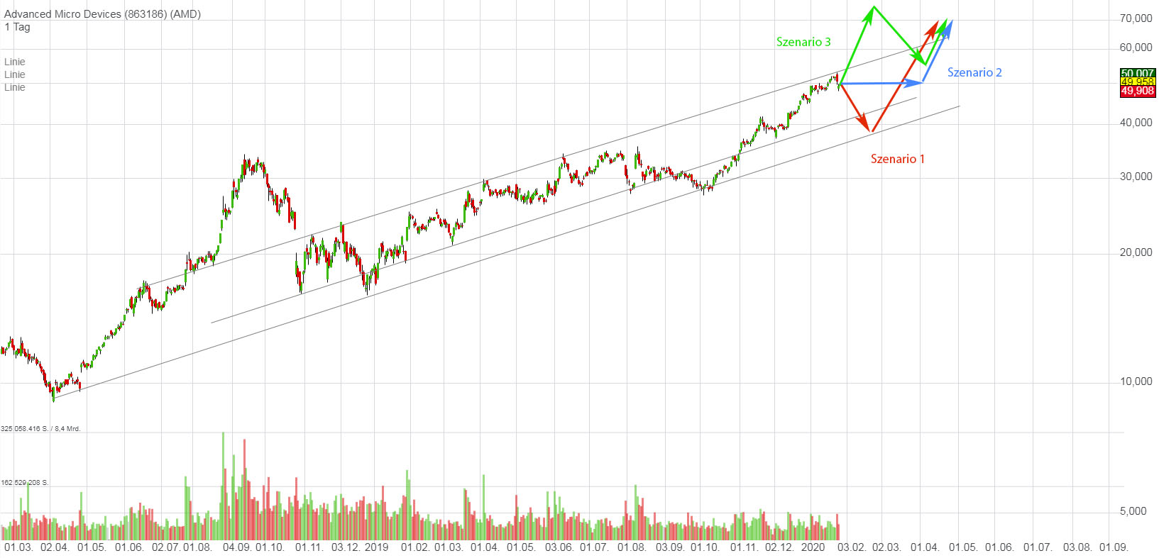 Die einzige wirklich signifikante Korrektur von AMD in den letzten 2 Jahren war jene von 34$ auf 17$. Die kam aus dem nichts und löste sich auch genauso schnell wieder auf. Danach gings kontinuierlich aufwärts.