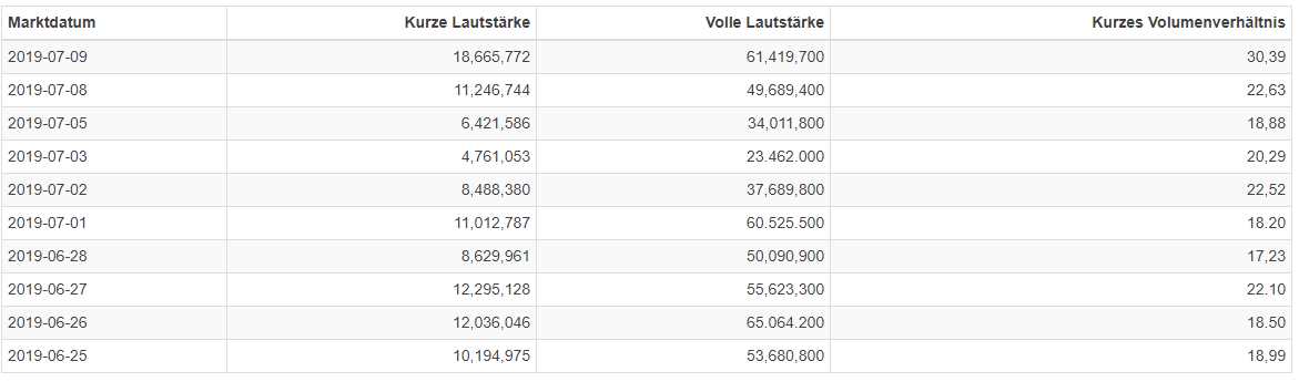 Marktdatum§Kurze Lautstärke Volle Lautstärke Kurzes Volumenverhältnis