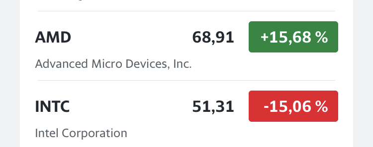 Dem Intel wünsche ich immer noch den Pest ans Hals - haben es nicht anders verdient. Nun bewegt sich Intels MK zu 150 Milliarden und AMD wird wohl sehr bald bei min. 90-120 Milliarden notieren.