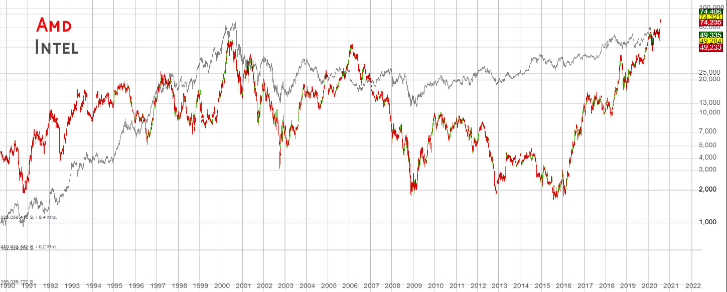 Da AMD aber nach wie vor kaum Gewinne einfährt denke ich wird da noch viel Spielraum sein, wenn AMD denn mal ein Quartal auch 1 Milliarde Gewinn abwirft, hoffe das sehen wir in 2022 dann regelmäßig wie bei Nvidia. ich hoffe/denke wir stehen aktuell da wo Nvidia ende 2016 gestanden hat, wenn amd bei den GPU´s auch wieder vorne Mitmischen kann werden die nächsten Jahre unsere Aktien durch die Decke gehen. endlich fängt AMD an zu wachen ist aber verglichen mit NVIDIA und Intel nur ein kleiner Fisch, gegen Intel Wachsen sie jetzt schon Nvidia steht noch aus und folgt hoffe ich ab Q4