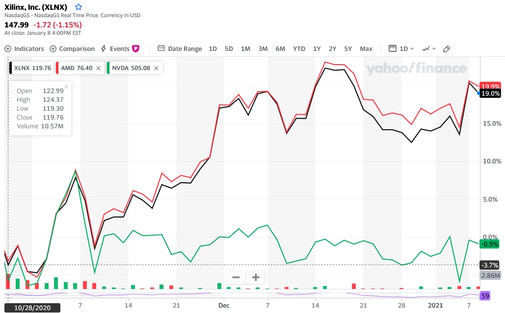 Xilinx hatte schon am 09.10.2020 auf Grund von Gerüchten reagiert und nochmals nach Bekanntgabe. Schließlich bietet AMD ~$140 pro Xilinx Aktie.