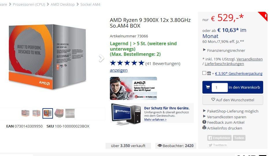 CPU fehlt noch die Komplettierung mit 3500(X), 3950X, 3900, Threadripper, Pro Versionen, Mobile?.