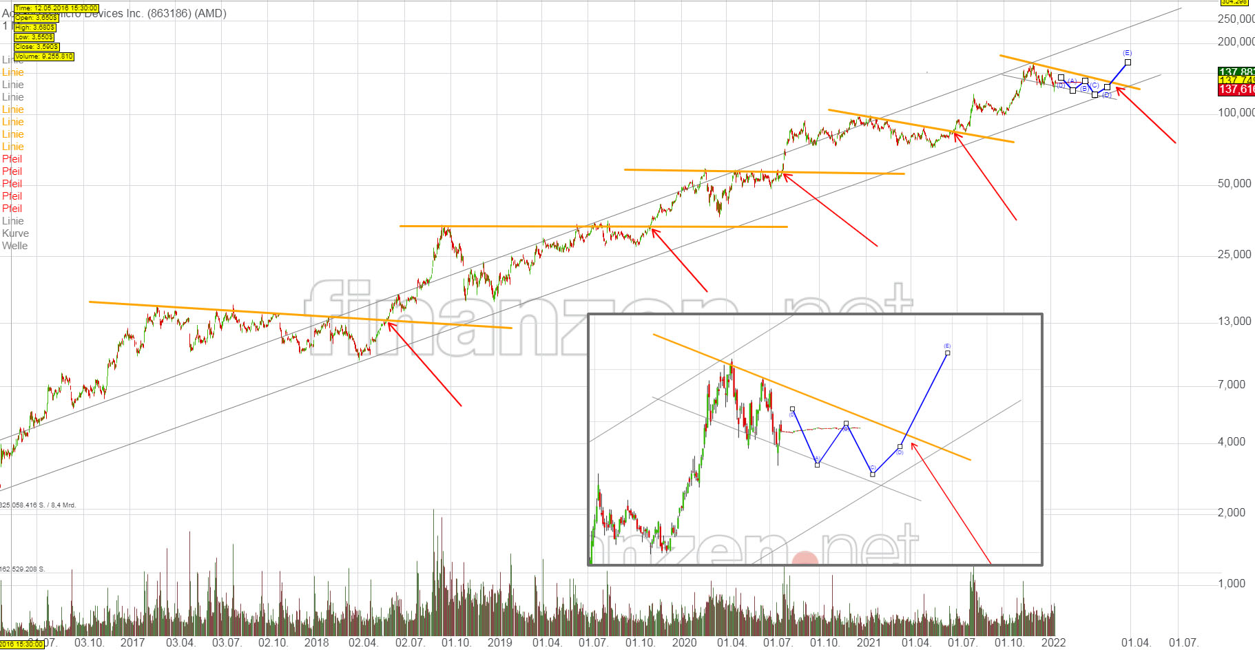 und Tech. Ich bin long mit Geduld im Gepäck. Der neue 8 Kerner mit 3d Cache ist ein Volltreffer, ich denke da läuft, den Umständen entsprechend, alles nach Plan.