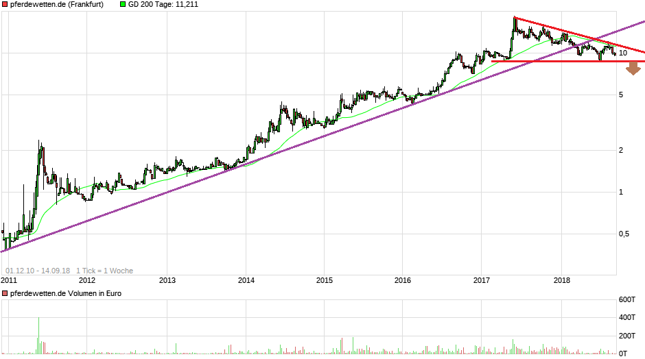 komisch, dass du die div bar bekommen hast, bei mir ist der ek kurs in meinem neuen Depot runtergesetzt worden, dachte das wäre dann bei den anderen Aktionären auch so. positiv sehe ich, dass insider mal wieder aufstocken, der letzte Rückkauf war bei 9 Euro ca, vom Vorstand. Wenn jetzt noch das Direktorium einsteigt, und die wissen wie es auf der Bahn am Wettschalter aussieht, abgesehen von den internationalen Rennen und Wetten. Der Galoppsport rennt, nur die Allgemeinheit kennt sich damit nicht aus, da es zu speziell ist. Positives sehe ich im jungen Mangagement und Vorstand wie Pierre Hofer der Mann hat Biss und zug und an den umsatzzahlen. leider ein marktenger titel. charttechnisch sieht es für mich schon seit 2 Monaten so aus, als müsste mal der aussbruch kommen. seitdem es im letzten jahr ziemlich langweilig war, was den Kurs anbelangt und auch den newsflow.
